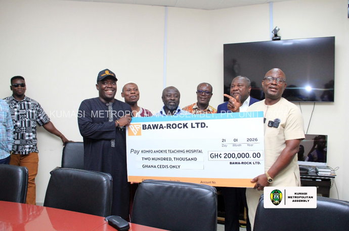 The Metropolitan Chief Executive (MCE) of the Kumasi Metropolitan Assembly (KMA), Hon. Richard Ofori-Agyeman Boadi, in collaboration with BAWA ROCK Limited, has made a donation of two hundred thousand Ghana cedis (GH₵200,000) to the Komfo Anokye Teaching Hospital (KATH) to assist patients who are unable to settle their medical bills after discharge.